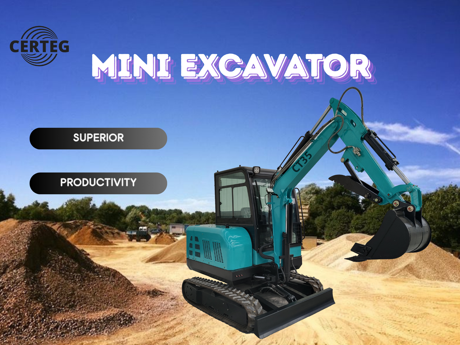 The Certeg CT35 mini excavator is a 3.5-ton mini excavator designed for efficiency, reliability, and versatility in tight working spaces. Built with a powerful engine and advanced hydraulic system, the CT35 delivers exceptional digging force and smooth control, ensuring optimal performance in construction, landscaping, and utility projects.
