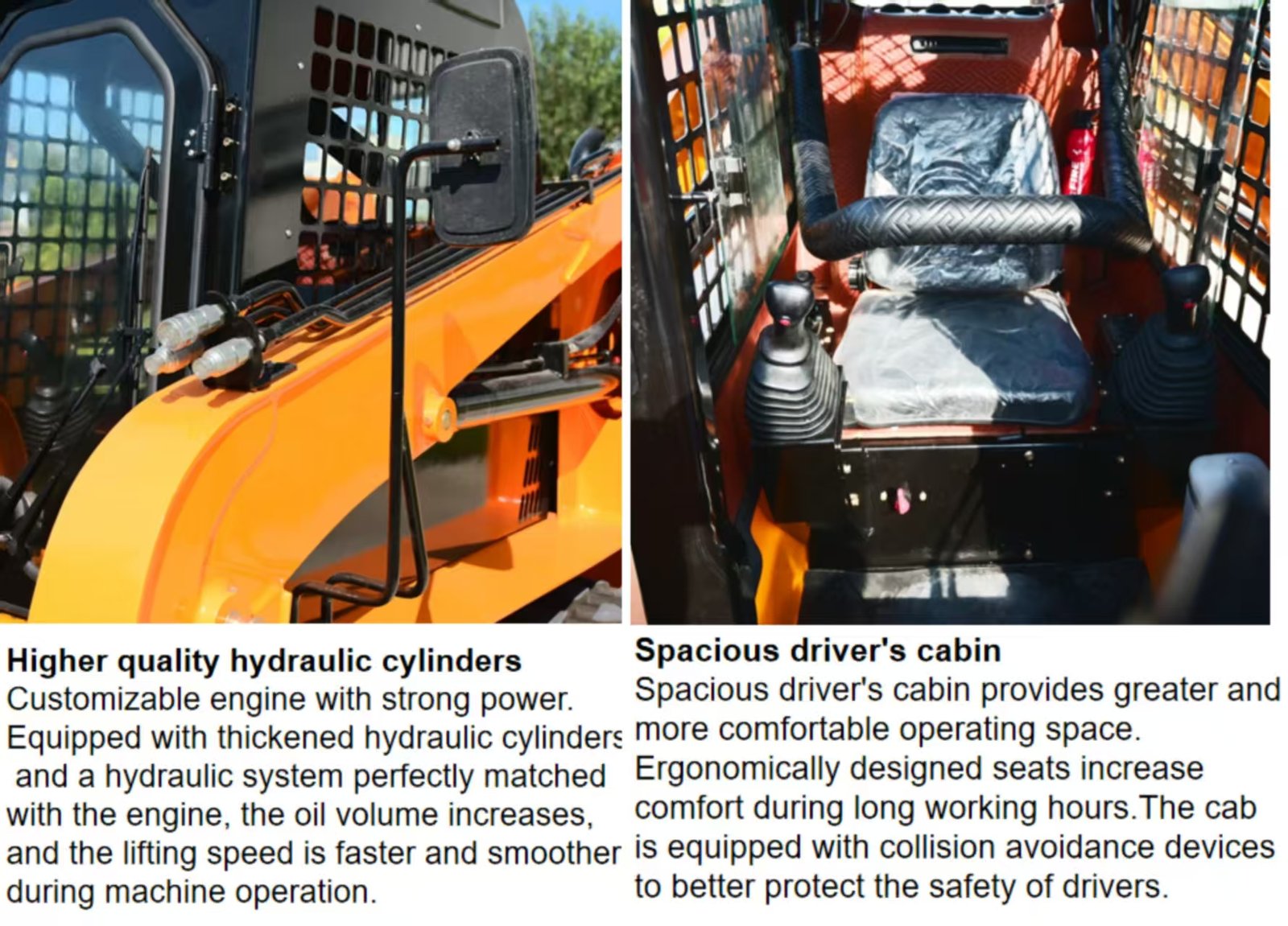 The grapple is used to handle irregular materials such as logs, brush, and demolition debris. Trenchers are used to create clean, straight trenches for utilities and irrigation lines. These attachments enable our skid steer loaders to have a wider range of operational capabilities in fields such as construction, landscaping, and agriculture.