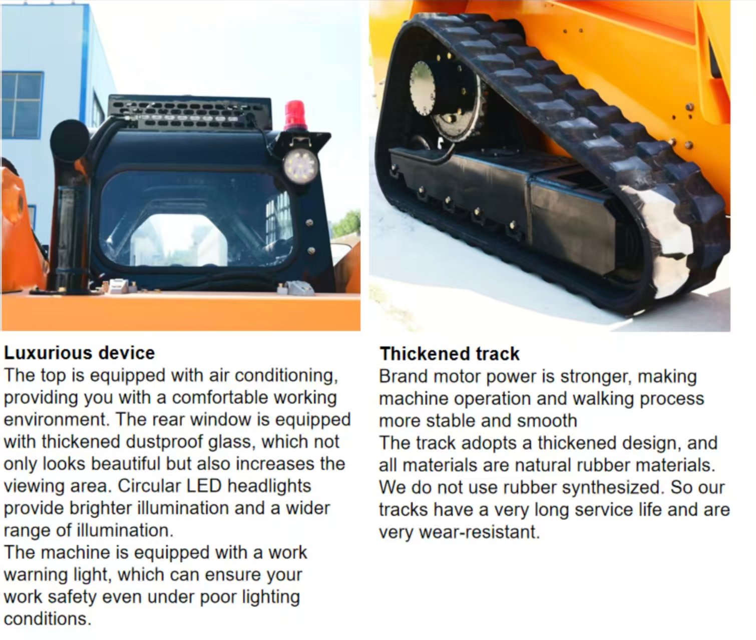 The grapple is used to handle irregular materials such as logs, brush, and demolition debris. Trenchers are used to create clean, straight trenches for utilities and irrigation lines. These attachments enable our skid steer loaders to have a wider range of operational capabilities in fields such as construction, landscaping, and agriculture.