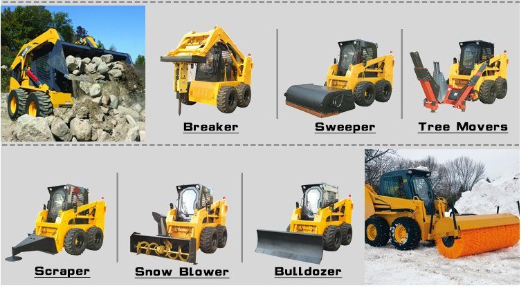 Our skid steer loaders can be equipped with a variety of attachments, mainly including buckets, pallet forks, augers, hydraulic breakers, grapples, and trenchers.
