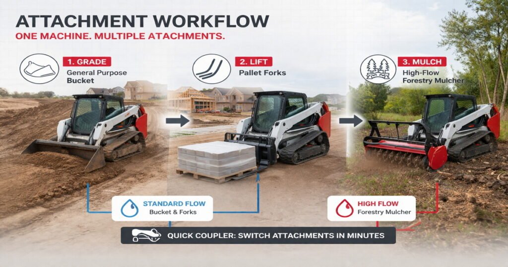 The buyers who extract the most value from their CTLs treat the machine not as a single‑function loader, but as a hydraulic power platform for a rotating attachment fleet. [dozr]