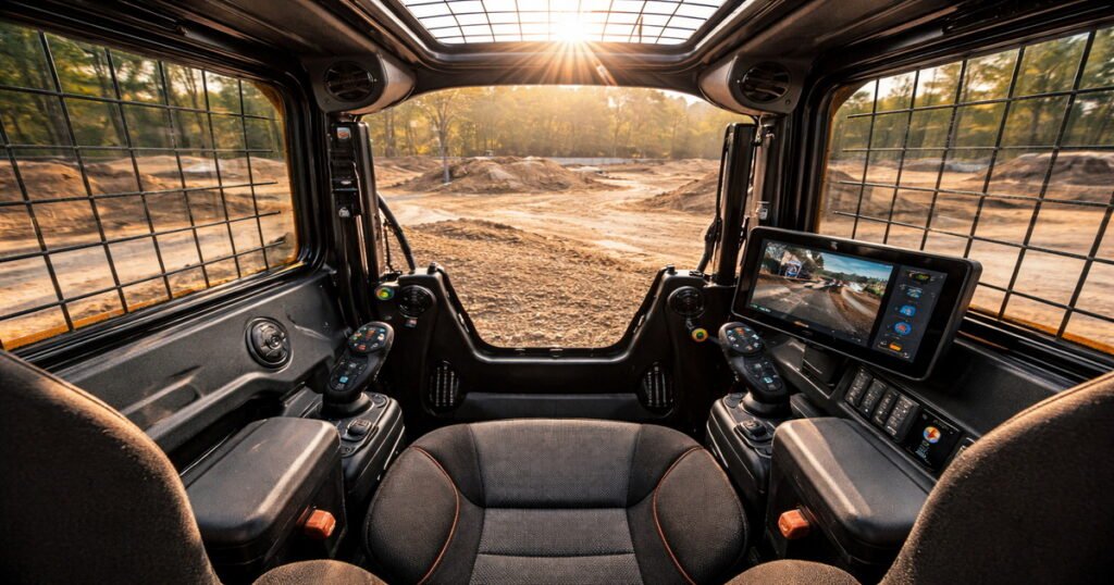 5. Evaluate cab comfort and visibility – sealed cab, HVAC, seat quality, display size, camera systems. Operator productivity and retention now depend heavily on this. [compactequip]