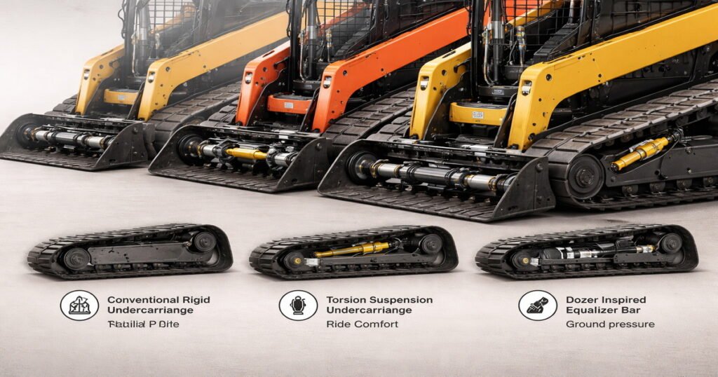 4. Assess undercarriage design (torsion suspension, dozer‑style equalizer bar, solid mount) for your desired balance of stability, comfort and cost. [compactequip]