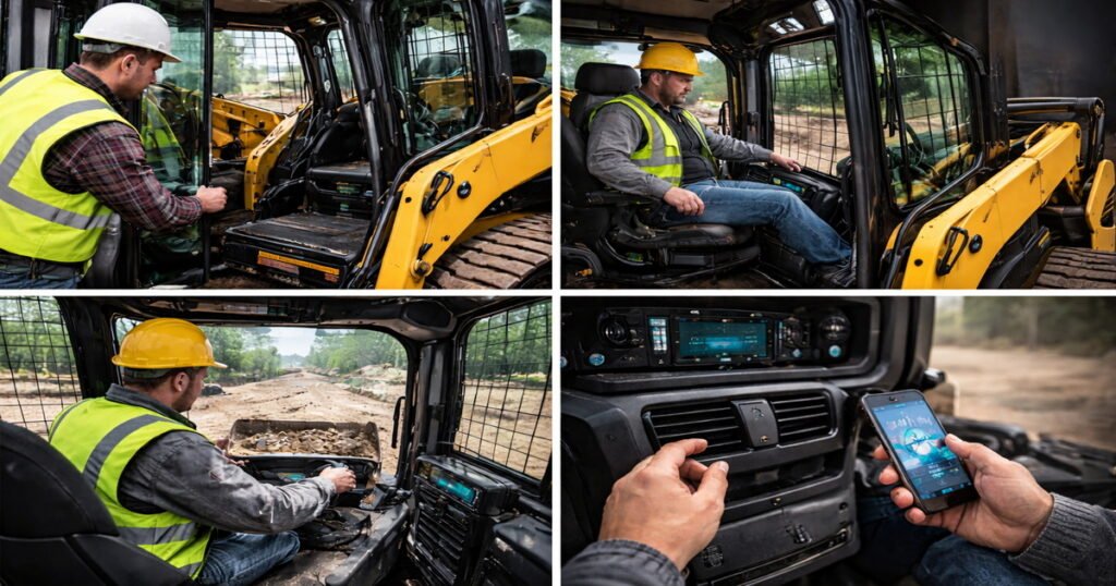 A quiet cab with quality audio also helps reduce cognitive fatigue. Instead of fighting engine noise, operators can clearly hear two‑way radio calls, alarms, and spotters outside the machine. For fleet managers, standardized in‑cab layouts and connectivity across equipment models simplify training and reduce operator error when they switch between machines. [ideahills]